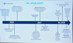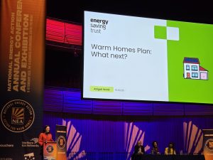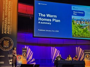 NEA’s Andrej Miller introduced a topic that most of us in the room were particularly keen to hear about, as the Warm Homes Plan had only recently been published, and there were several notable gaps in the plan, including details around the financial support for residents deemed “able to pay” by government, and also whether there’s any room for we assembled energy advisors within the £15bn programme. |