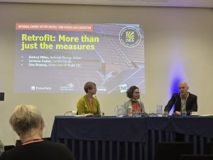11.15-11.25 Spotlight on: Community Retrofit Hubs NEA manages several Community Retrofit Hubs, and their Home Retrofit Consultant Aisling McGovern provided an overview of the barriers and successes, highlighting how little knowledge there is in the community about retrofit measures, the length of time it takes to engage with residents, build trust, and get contractors to deliver the work, often with tight deadlines due to stop-start funding streams. Aisling stressed the requirement of local energy advice experts to hold the hand of residents, through the journey and beyond. |