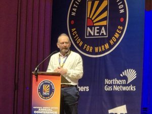 Monday evening saw the Exhibition opened officially by the Mayor of Gateshead, Councillor Freda Geddes, alongside NEA’s Chief Executive Adam Scorer, and representatives from the Conference sponsors, Evouchers, Northern Gas Networks, Northern Powergrid, and OVO. I was glad of the opportunity to catch up with friends, including Charis Grants, Christians Against Poverty, and LEAP (Local Energy Advice Partnership), who were exhibiting for the duration of the conference.